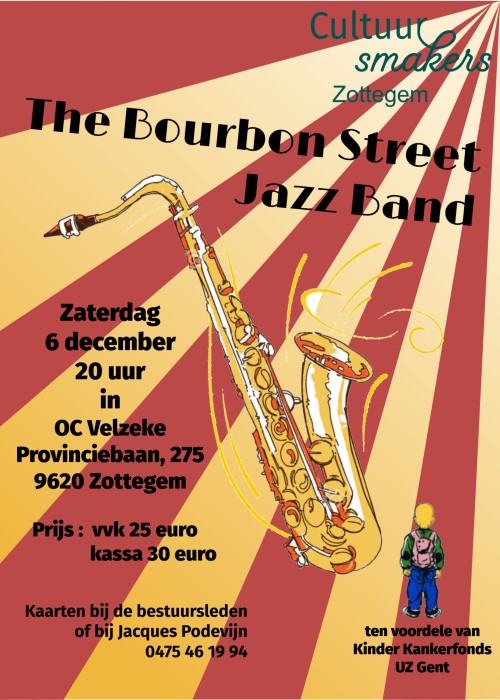 Zaterdag 6 december: jazz concert met The Bourbon Street Jazz Band tvv vzw KinderKankerFonds.